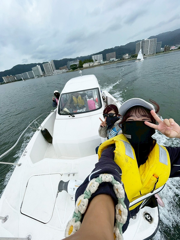 ヨット部マネージャーのアピールポイントは、自主性を持った活動ができるところです。船舶免許を活かして船を操縦しながら、風向や風速の計測を行い、選手が練習メニューをこなすためのサポートをします。また、練習中の安全を見守ることも重要な役割で、選手が安心して練習に集中できる環境づくりを担っています。